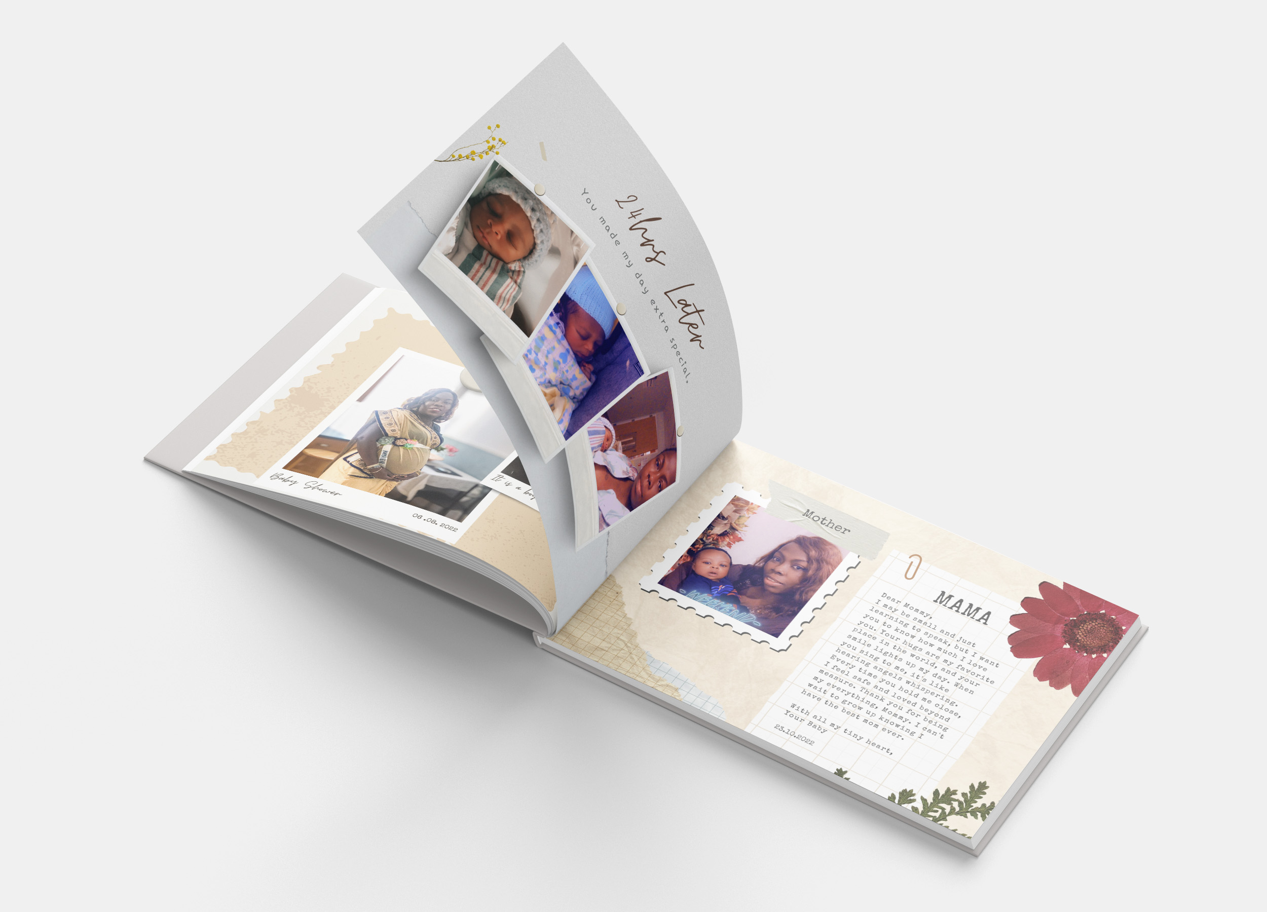 Celebrate the incredible journey from pregnancy to your baby’s first year with a personalised photobook. This customised photobook beautifully captures every milestone, from the first scan to those unforgettable first steps, creating a timeless keepsake that tells the story of your baby’s early life.